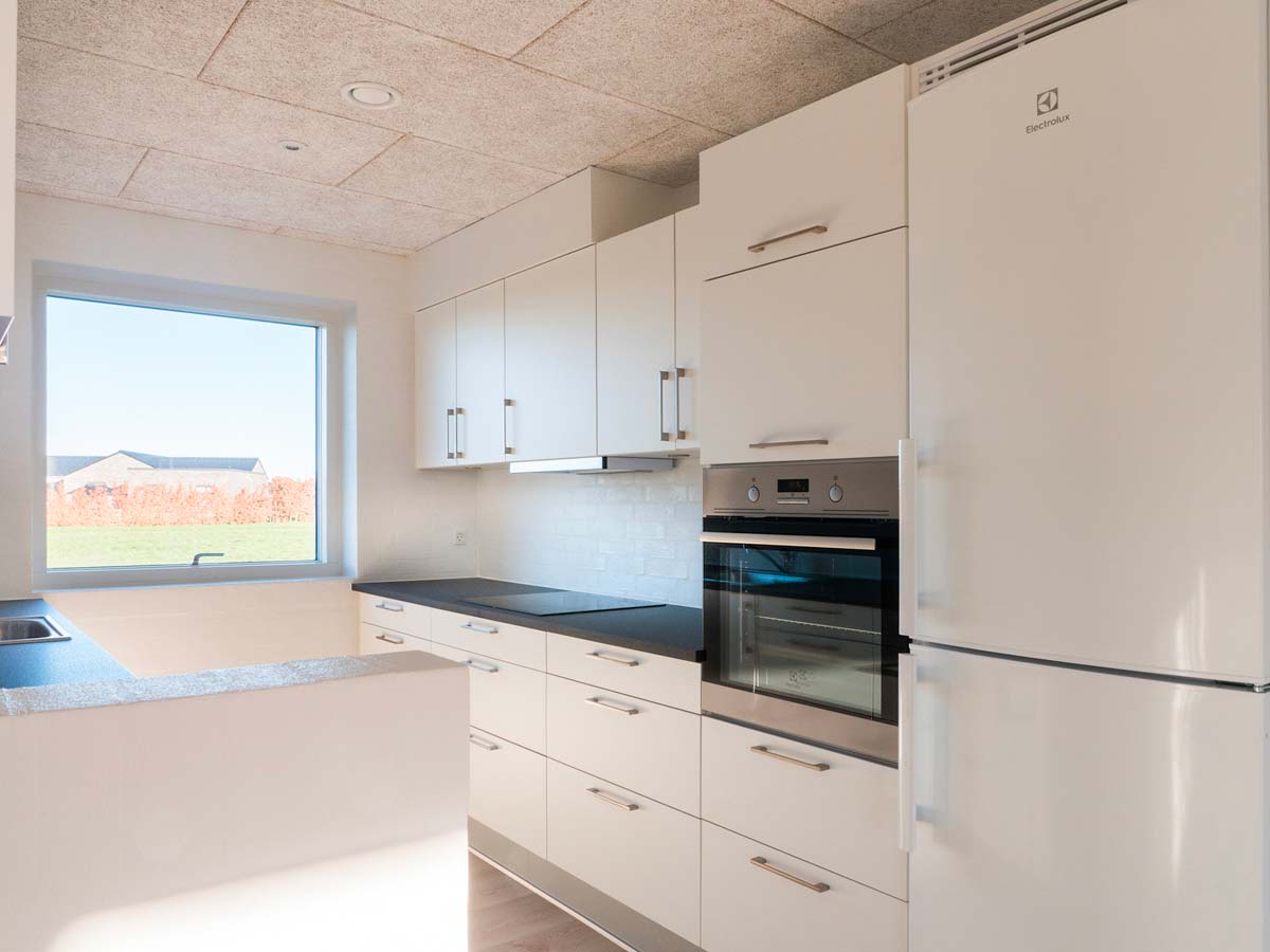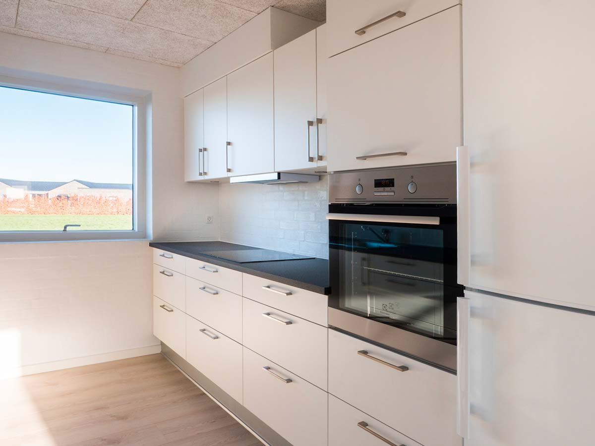Det flotte Svane køkken er boligens omdrejningspunkt – hvor moderne køkkenbekvemmeligheder er i højsædet.
